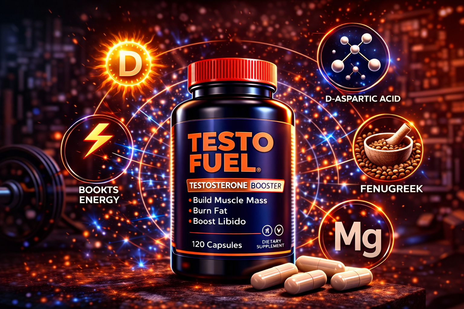 TestoFuel includes D-aspartic acid, vitamin D, oyster extract (zinc), magnesium, and vitamin B6.